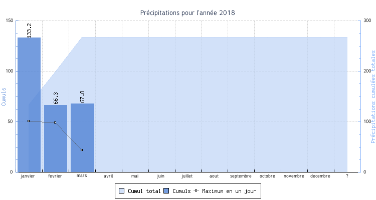 | janvier | -0.2 °C | 7.3 °C | 20.0 °C | 15.5 °C | 11.0 °C | 10.6 km/h | 85.7 km/h | 311 |