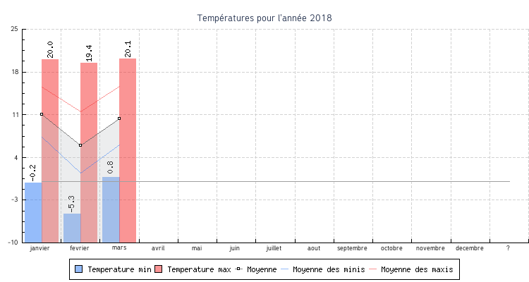 | fevrier | -5.3 °C | 1.4 °C | 19.4 °C | 11.5 °C | 5.9 °C | 8.5 km/h | 55.1 km/h | 339 |