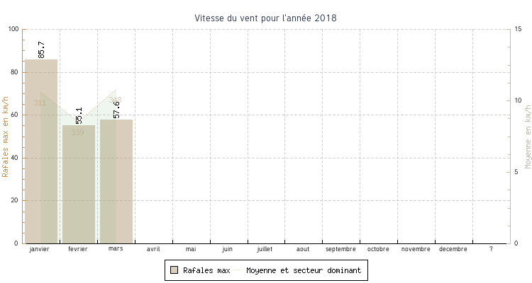 | mars | 0.8 °C | 6.1 °C | 20.1 °C | 15.6 °C | 10.3 °C | 10.8 km/h | 57.6 km/h | 348 |